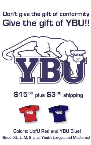 In Provo last time I visited, I saw an obnoxious T-shirt slogan. It said: " BYU- THE University of Utah." In fact the opposite is true. The University of Utah is the historical Brigham Young University. If Bro. Brigham were to rise from his grave and attend a BYU-Utah football game, he'd probably be wearing red.