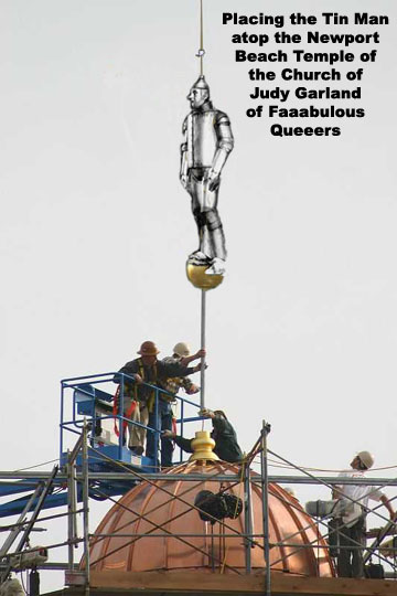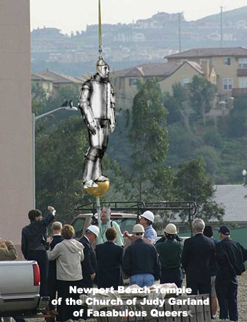 Here are a few choice images someone took of the raising of the Tin Man over the newly-dedicated Newport Beach Temple of the Church of Judy Garland of Faaabulous Queers. - Connell the Barbarian